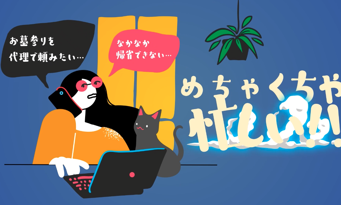 新しいお墓参りサービス「ハカミル」 株式会社願、日本石材センター株式会社 #お墓参り代行 #ハカミル #WEB CM Challenge I忙しくて帰省できない、お墓参りできない人へ「お墓参り代行」は何も悪くないことを表現する。 Brewed I新しいお墓参りサービス「ハカミル」のプロモーション企画。デザイン構成、アニメーション、ナレーションを担当しました。忙しくて帰省できない人、お墓参りに行く時間がない人に、お墓参り代行サービスを利用してもらうために、まずは「代行」に対する抵抗感を拭うことを目指しました。お墓参り代行のマイナスなイメージはポップなアニメーションで払拭し、少しクセのあるナレーションでサービスへの親しみやすさを引き立てました。 ハカミルとは? I忙しいお客様に代わって心を込めてお墓参りを行う、お墓参り代行サービス。大切なお墓の現状を細かい部分まで報告するお墓レポート、遠方でもお墓参りの雰囲気を体感できるお参り撮影、幅広いプランを用意しているお掃除・お供えなど、充実したプランを展開しています。 TwitterFacebook